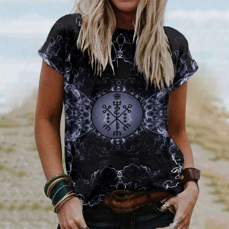 Cloud And Fog Chain Viking Totem Print T-Shirt