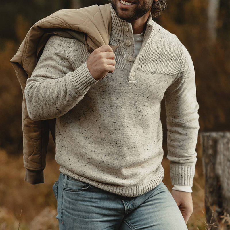 Men's Scotland Wool Knit Vintage Button Turtleneck Sweater