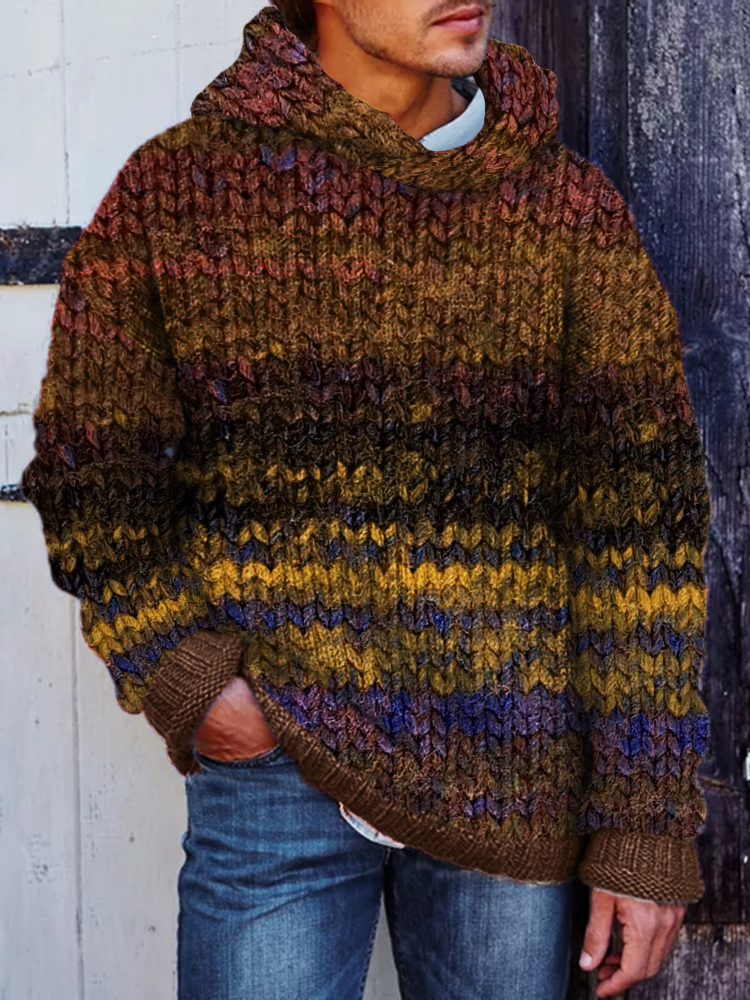 Men's Vintage Colorful Crochet Art Cozy Hooded Sweater