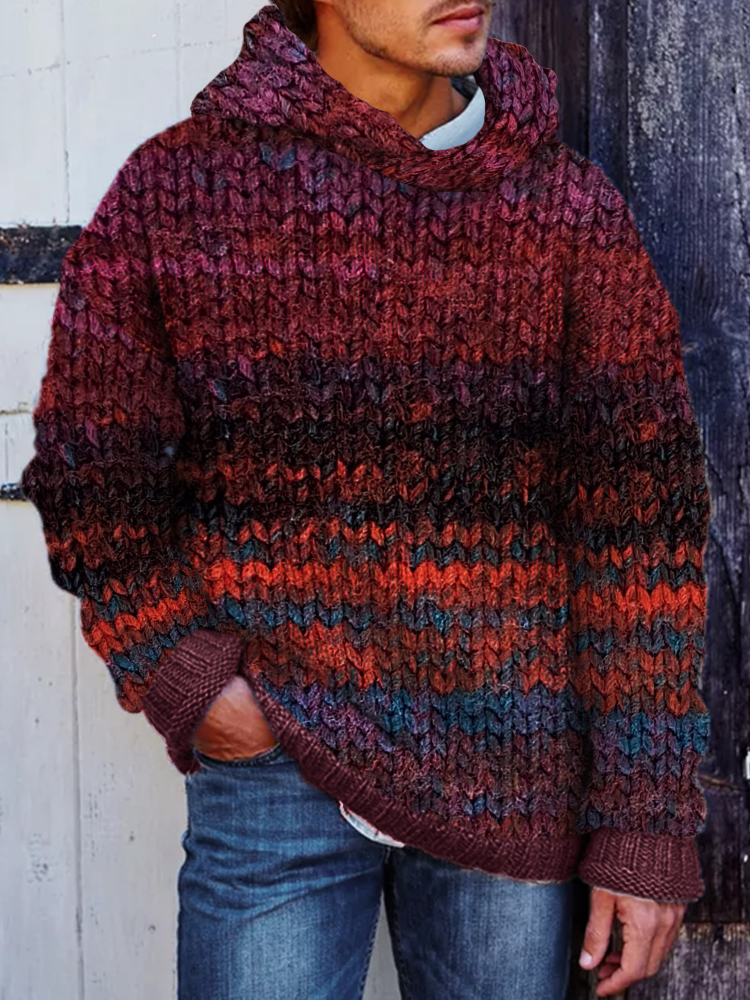 Men's Vintage Colorful Crochet Art Cozy Hooded Sweater