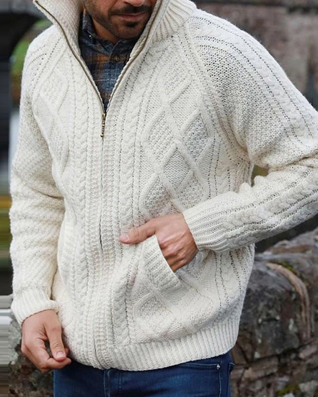 Mens Vintage Fair Isle Jacquard Weave Knitted Pocket Cozy Sweater