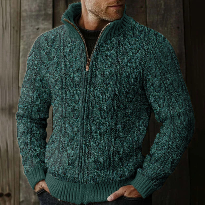 Men's Vintage Fairman Island Knitted Pattern Zip Sweater