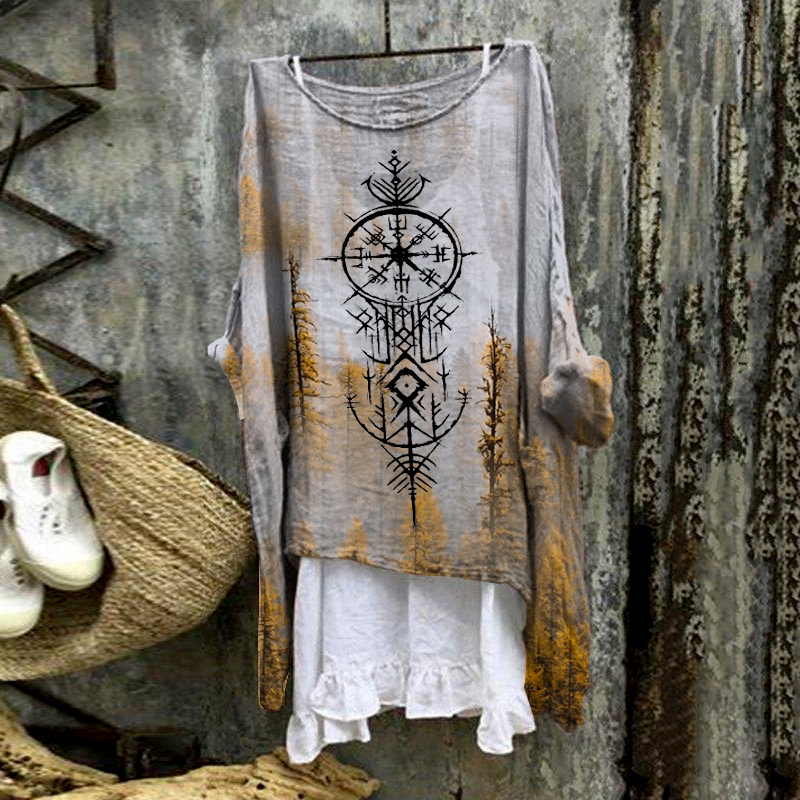 Tribal Ethnic Landscape Smudge Print Blouse