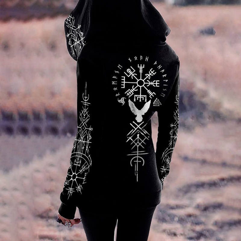Tribal Retro Viking Birds Ethnic Graphics Print Zipper Hoodie
