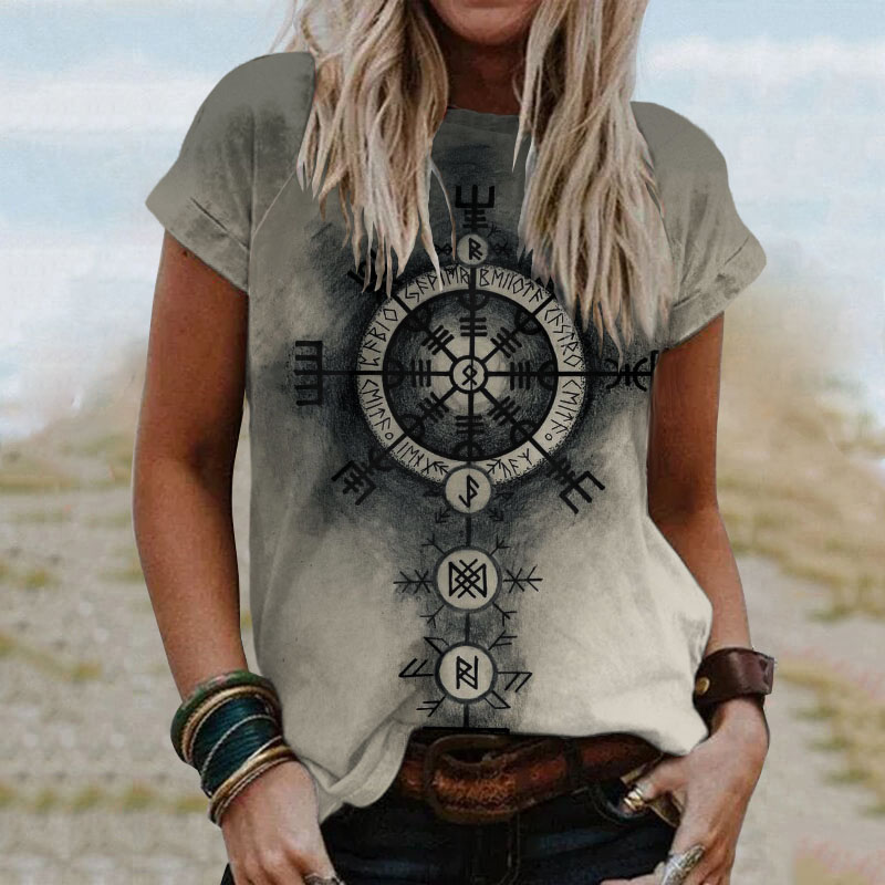 Tribal Viking Totem Print Short-Sleeved T-Shirt