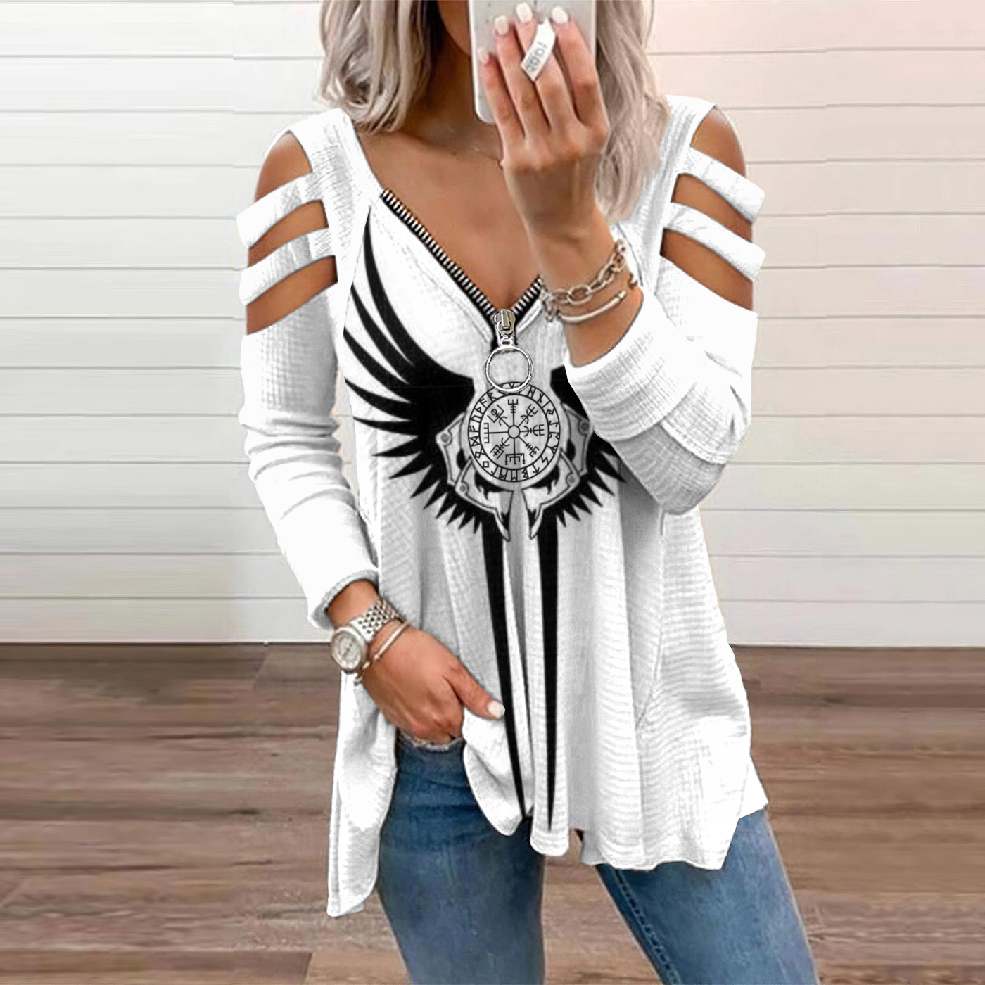 Women's Tribal Wings Hollow Out Zipper Casual T-Shirt